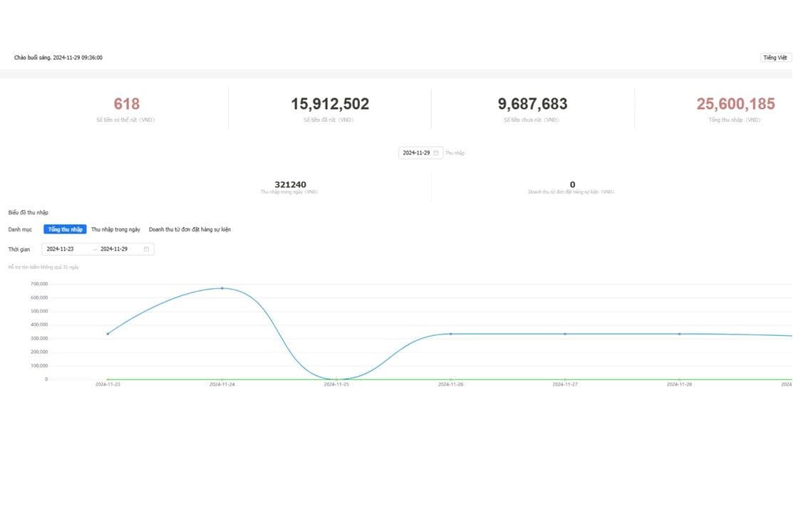 Thu nhập trong tháng 11 của editor nội dung Phim Truyền hình – TK B tại Hotspot Matrix có thể lên tới gần 1.300.000đ / ngày